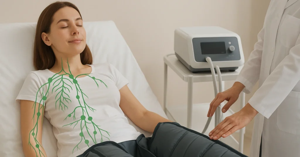 Ela realiza ciclos de compressão e descompressão que imitam o bombeamento natural do sistema linfático. Isso direciona os líquidos acumulados para os gânglios linfáticos, onde são filtrados e eliminados pelo organismo.